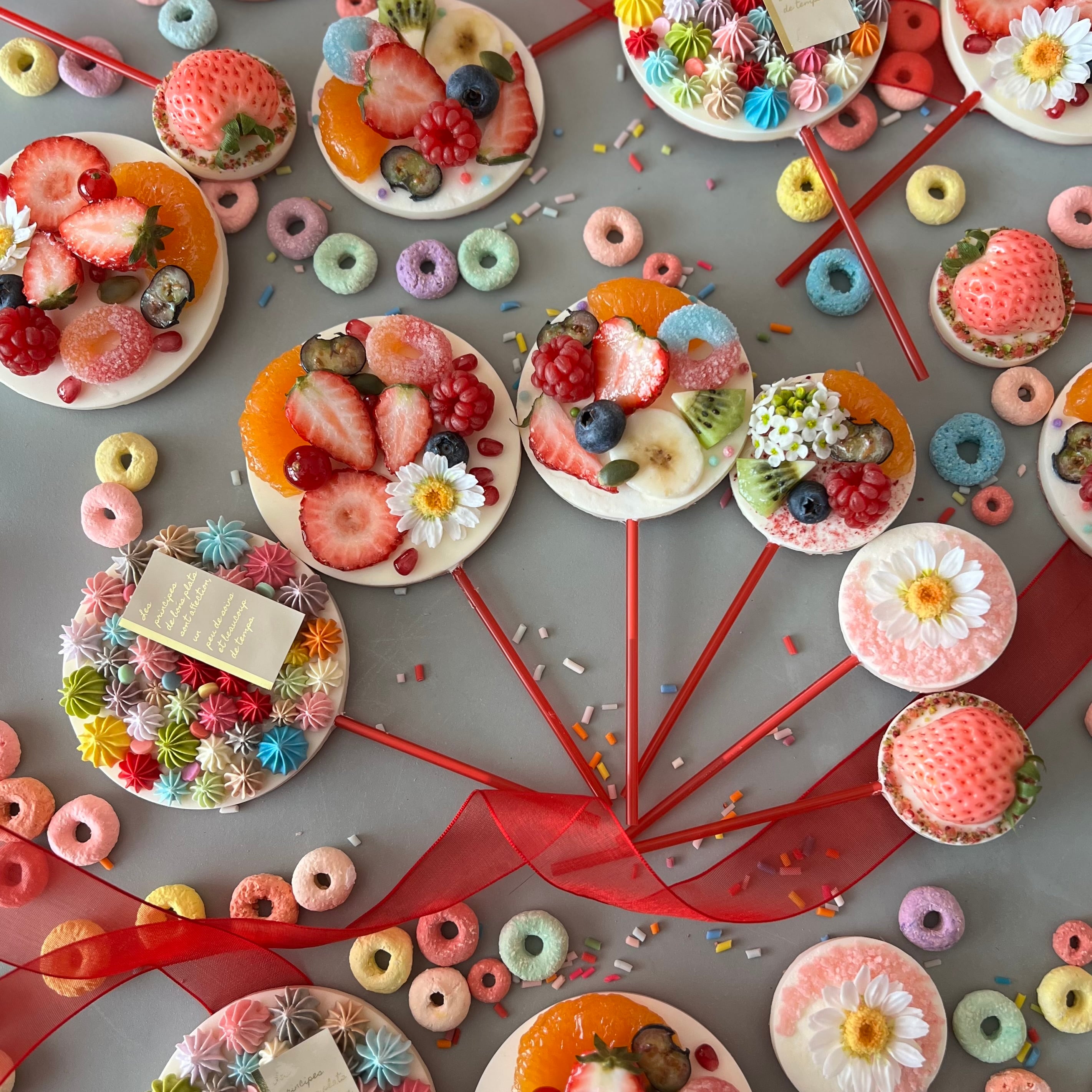 ・アリッサム・ノースポール・白苺・苺5種類・みかん・キウイ・ブルーベリー・ラズベリー・スライスブルーベリー・赤スグリ・パンプキンシード・柘榴の実・ミンツ・カラフルクリーム・リンググミ
