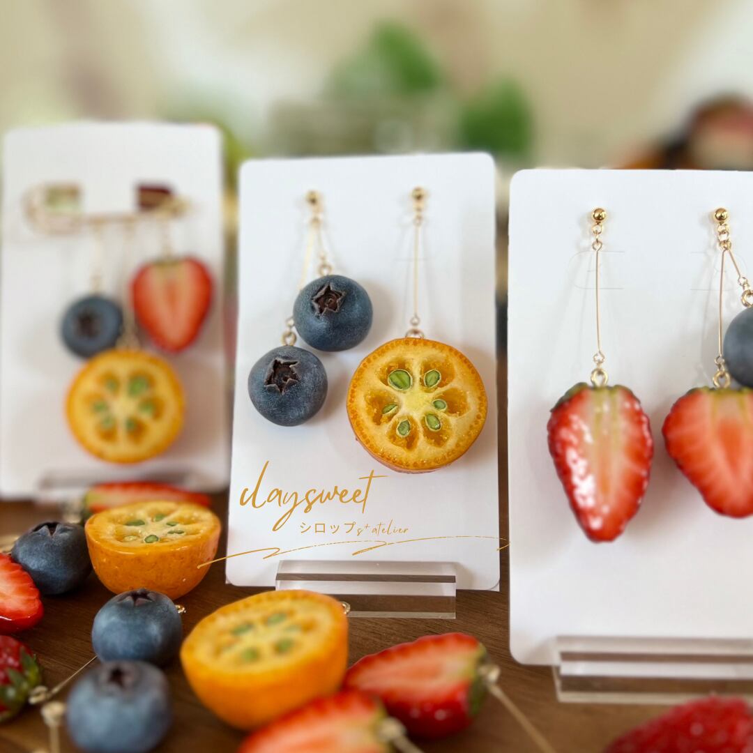 ・手仕事で仕上げたフルーツたちを使用したアクセサリーです