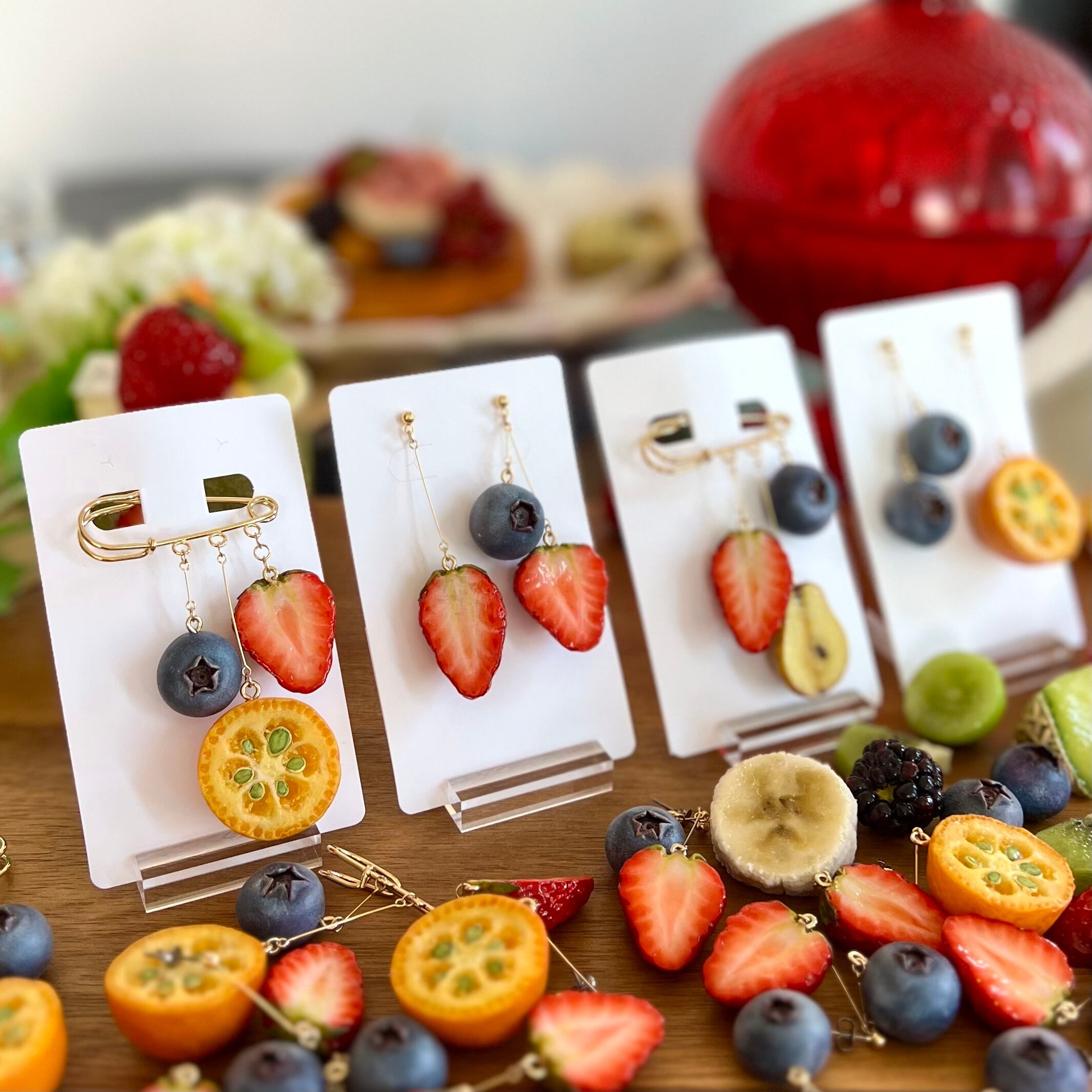 ・手仕事で仕上げたフルーツたちを使用したアクセサリーです