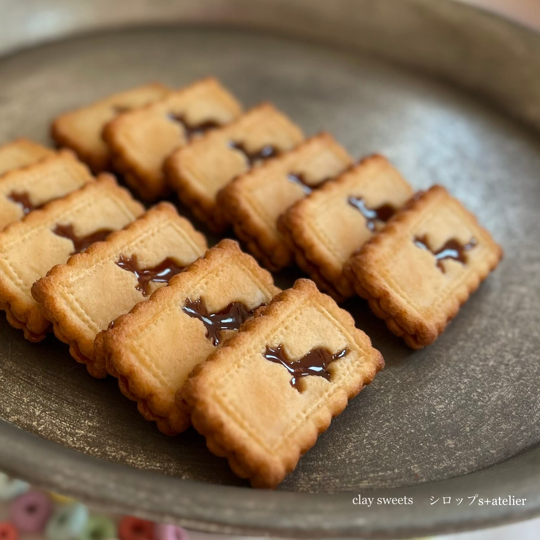 プリンは、ほろ苦大人カラメル、フェレットのシルエットをくり抜いたクッキーには色味を合わせ艶やかなキャラメルをサンド