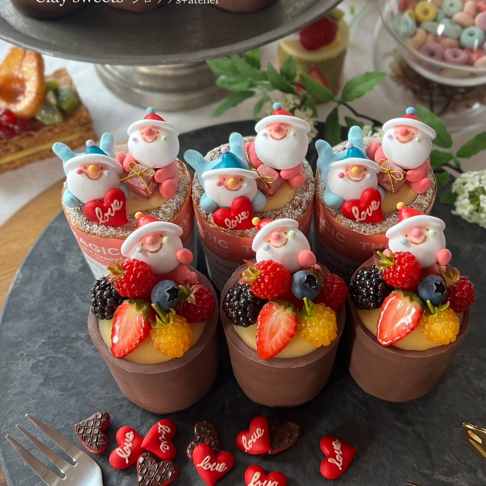 鮮やかな5種類のベリーとキュートなサンタトッピングの冬デザート