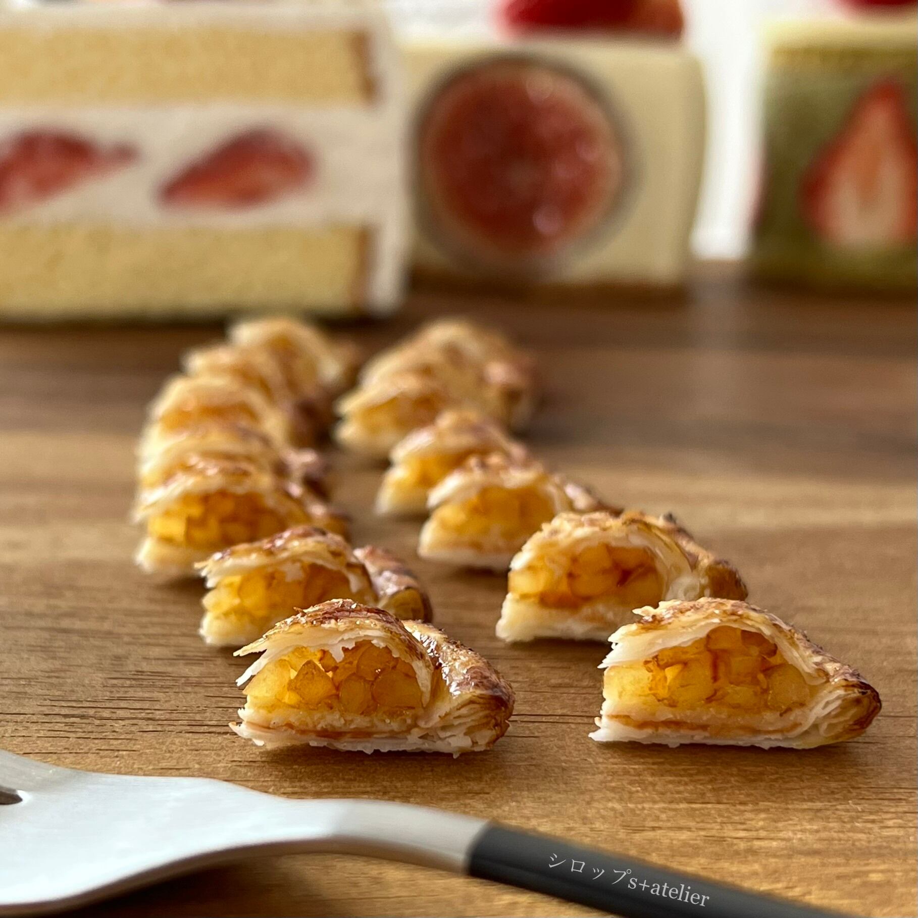アップルパイ: たっぷりのリンゴとサクサクしたパイ生地の層を表現し美味しそうな焼き具合に仕上げました