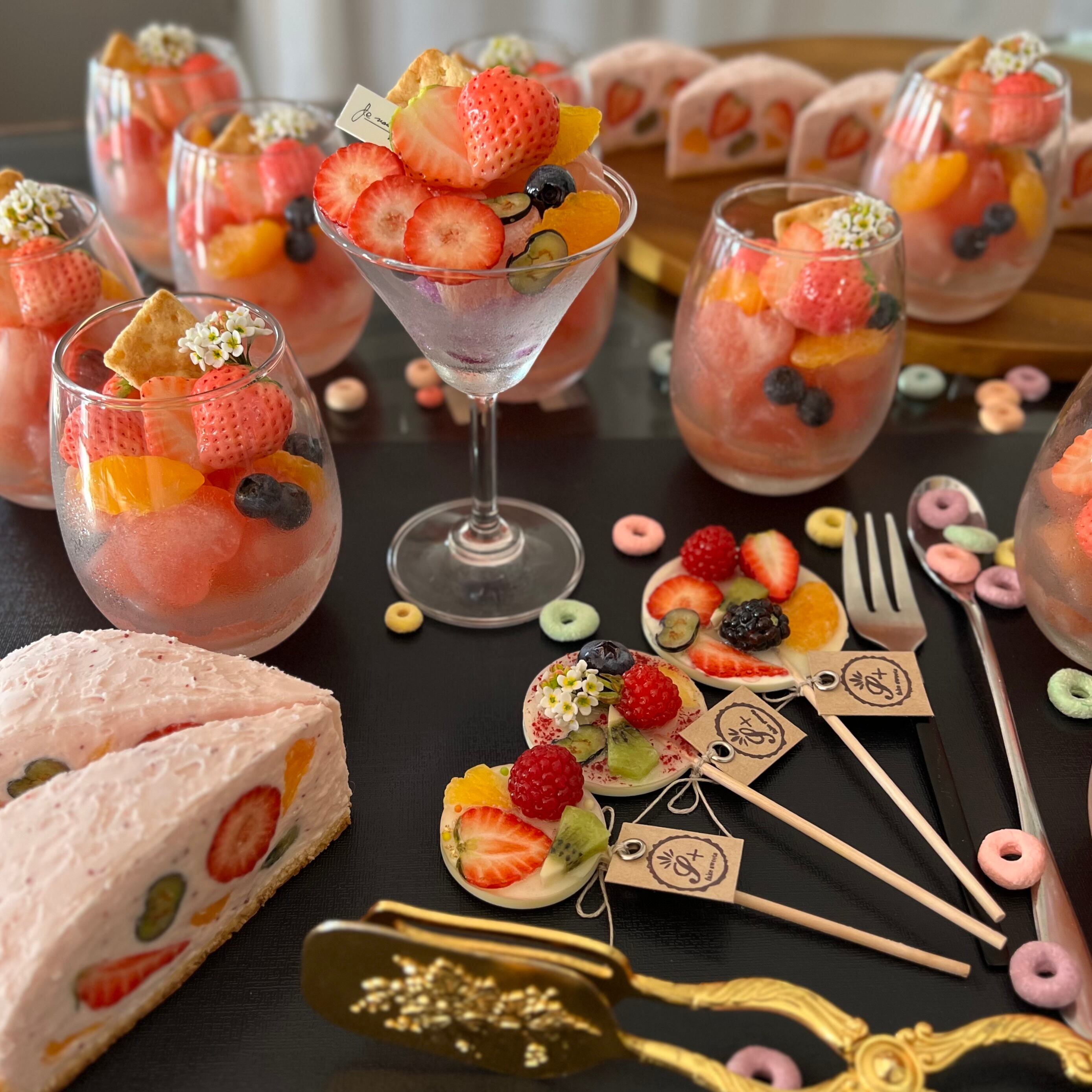 フルーツ同様シャーベットに添えられた 食べられないお花アリッサムも粘土で制作しました