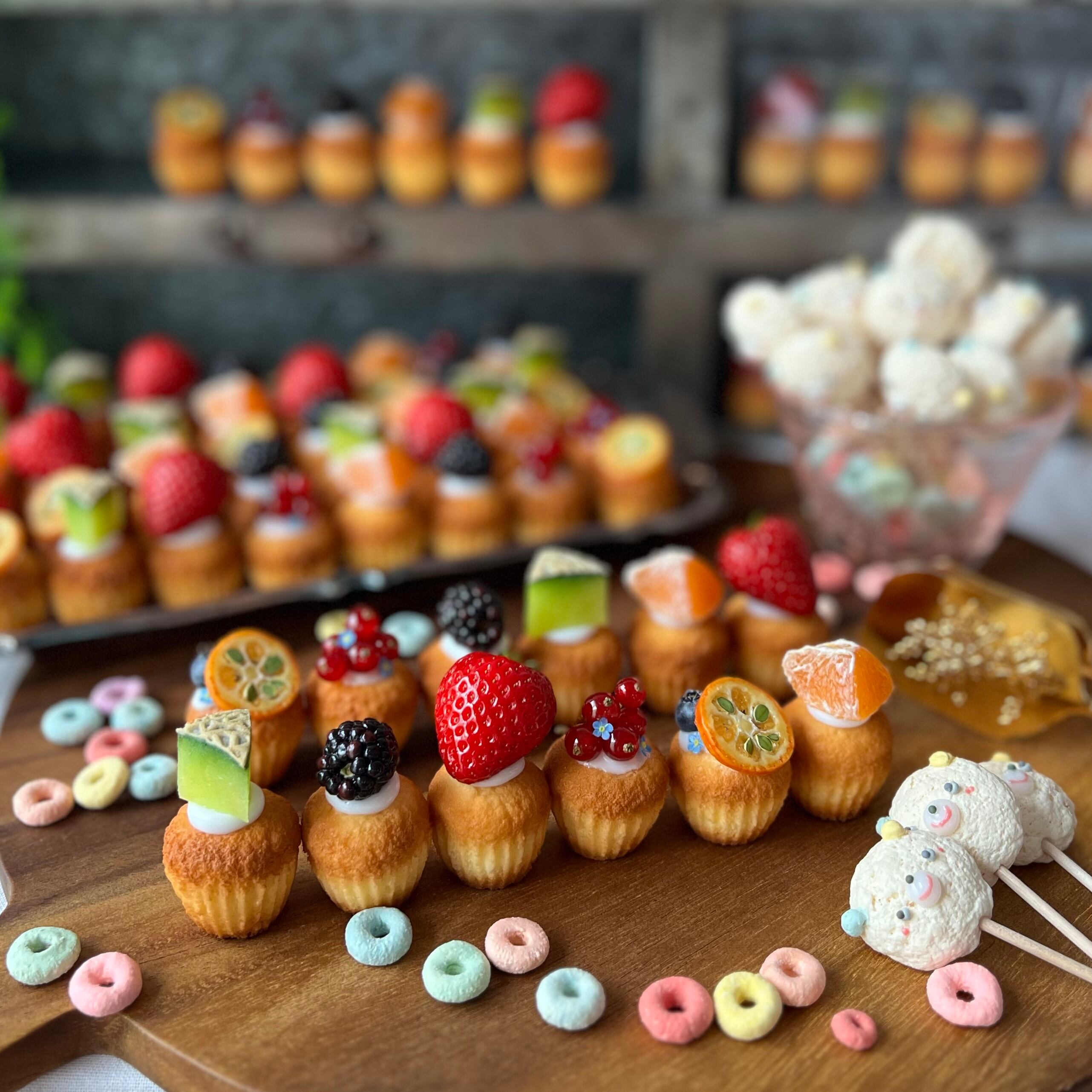 わすれな草トッピングのカップケーキも!